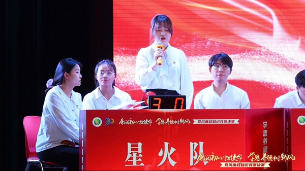 6月12日,学校“廉润初心担使命,学思养德树新风”党风廉政知识竞赛决赛在南绣山活动中心举行。我院“星火队”经学院推荐、学校初赛笔试、复赛案例分析等重重选拔,顺利晋级决赛并荣获大赛三等奖。